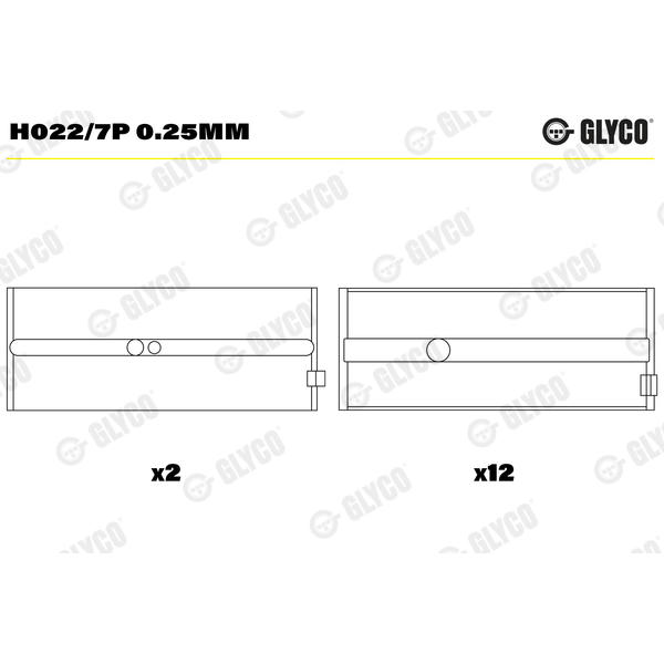 Hlavní ložiska klikového hřídele GLYCO H022/7P 0.25mm
